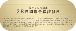しかしながら初めての方、限定で28日間の返品保証までついています。